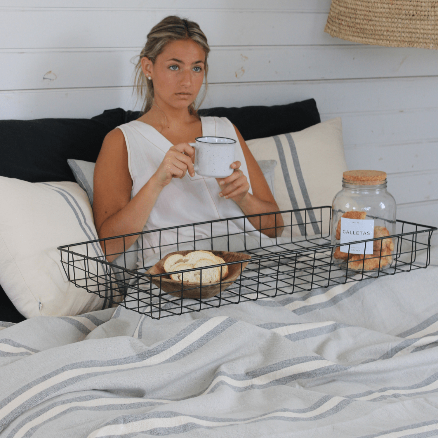 - Diseño a rayas en color color gris oscuro, gris claro y crudo/ reversible en tussor natural color crudo