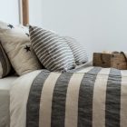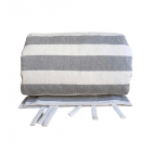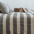 • Diseño a rayas en color crudo y gris. Reversible en lino y algodón color crudo.