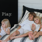 - Diseño a rayas en color crudo y negro/ reversible en lino y algodón color crudo.