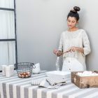 Aconsejamos que la caída del mantel, también conocido como el espacio desde el borde de la mesa hasta donde termina el mantel, sea alrededor de 15 a 30 cm.